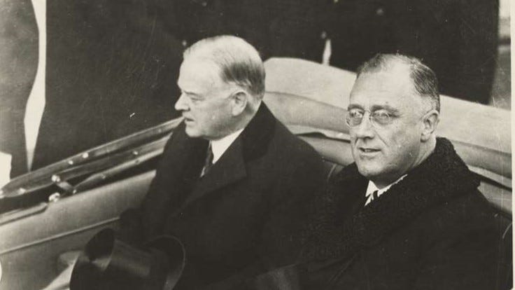 Pochi Presidenti in carica sono arrivati alla prova delle rielezioni in difficoltà come Herbert Hoover nel 1932. In un Paese ancora sconvolto dal tracollo finanziario del 1929 e nel pieno della più grande crisi economica della sua storia, colui che fino a poco prima prevedeva che l’America fosse vicina «a mettere fine alla povertà» non poteva aver conservato molta credibilità politica[1]. Hoover perse nettamente contro lo sfidante Democratico, l’ex Governatore dello stato di New York Franklin Delano Roosevelt, che salì alla Casa Bianca per quello che fu solo il primo dei suoi quattro mandati.
