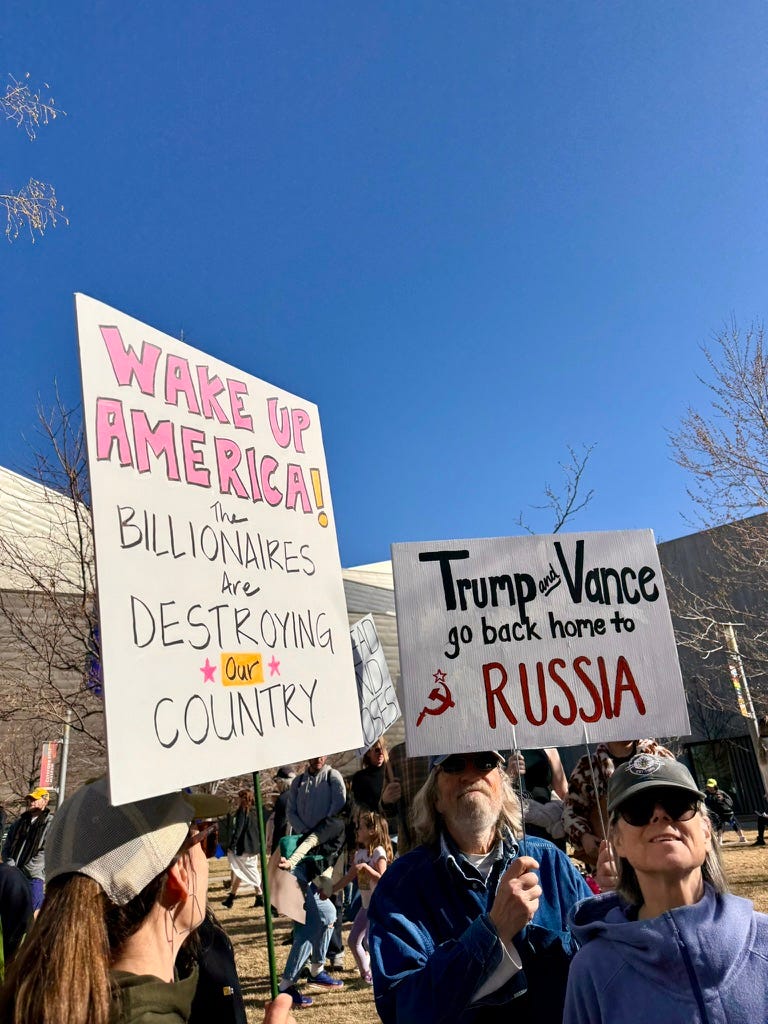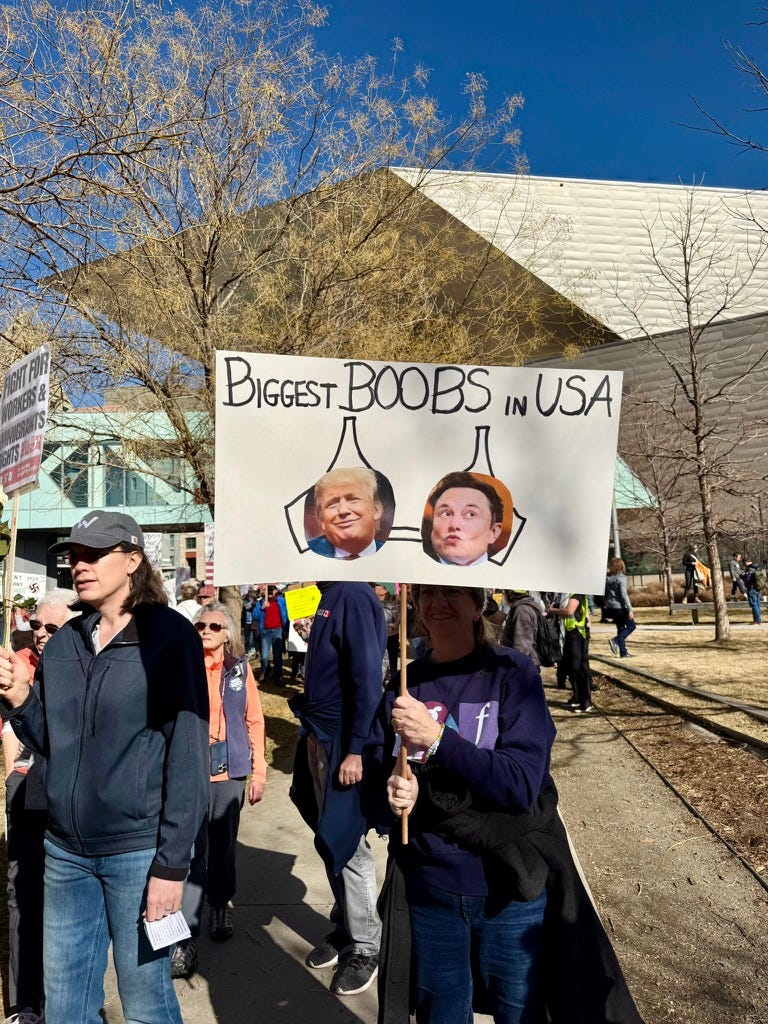 Riportiamo alcune foto per restituire l’atmosfera della giornata e i colorati cartelloni a sostegno dei diritti riproduttivi, delle comunità marginalizzate e degli immigrati, e di denuncia contro le politiche di Donald Trump e Elon Musk.