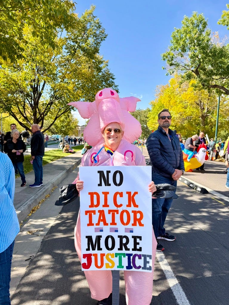 “Se non lottiamo noi per ciò in cui crediamo, che è il nostro dovere per la patria e la democrazia, chi lo farà?”, chiede Emily sorridente nel suo costume da maiale, chiara allusione al presidente in carica. “Ogni persona in questa folla contribuisce a questa lotta. Ogni singola persona serve ad allargare il movimento. È per questo che continuo a venire a queste proteste e a fare quel che posso, e anche per le persone che non hanno i miei stessi diritti. Voglio che queste persone vedano che c’è qualcuno che lotta per loro”.